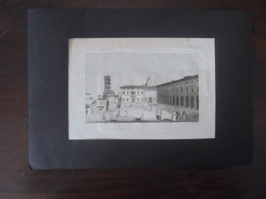 Tratta da L`Italie. Incisione su acciaio di mm. 155 x 95 (=lxh) più margini. Firmata in basso a sinistra: "Bury" e a destra: "Millet sc.". Bella Veduta animata da personaggi. Gora d`acqua all`angolo superiore destro.