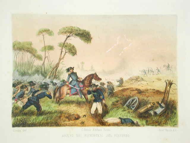 Arrivo dell'esercito piemontese sul Volturno, in bella coloritura coeva