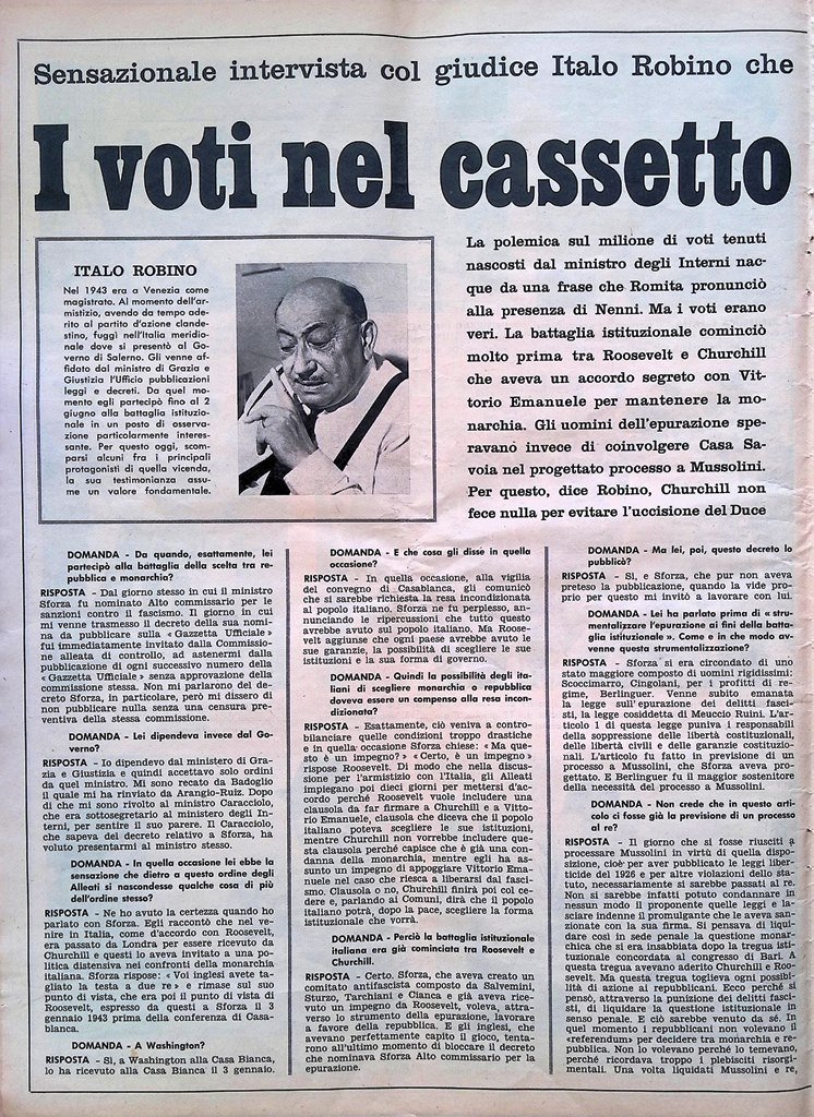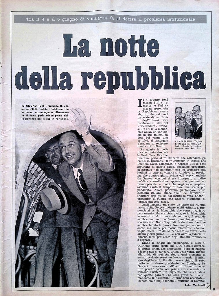Articoli del 1966 La Notte della Repubblica Umberto II Voti Cassetto Robino