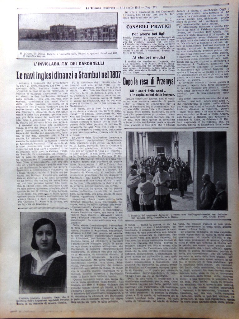 Articolo del 1915 WW1 Inviolabilità Dardanelli Funerali Agliardi Augusta Coen