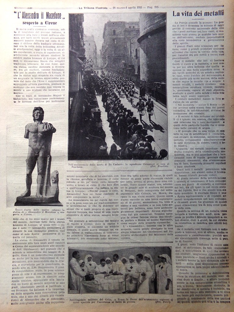 Articolo del 1915 WW1 Scoperta Cirene Alessandro il Macedone Ospedale Celio
