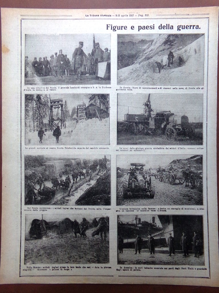 Articolo del 1917 WW1 Figure Paesi Guerra Somme America Fronte Lombardi Carnia