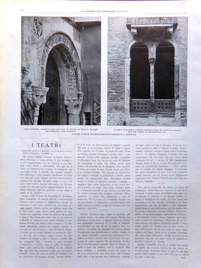 Articolo del 1925 Agnelli Sirmione Nava Pio XI Opere Scoperte a Venezia Teatri