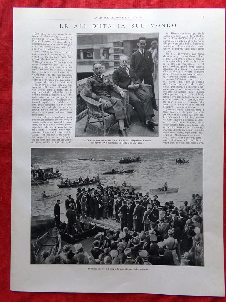 Articolo del 1925 Ali d'Italia sul Mondo De Pinedo Campanelli Savoia Alcione