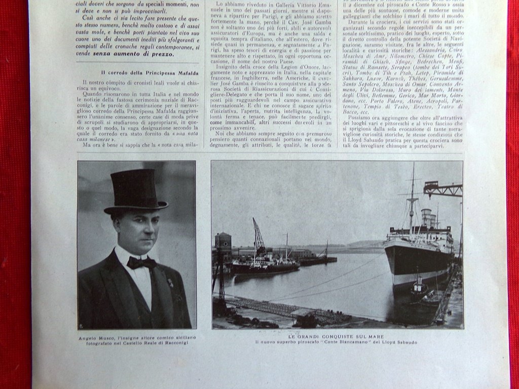 Articolo del 1925 Angelo Musco Conte Biancamano Italiani a Bombay Bruce Lanes