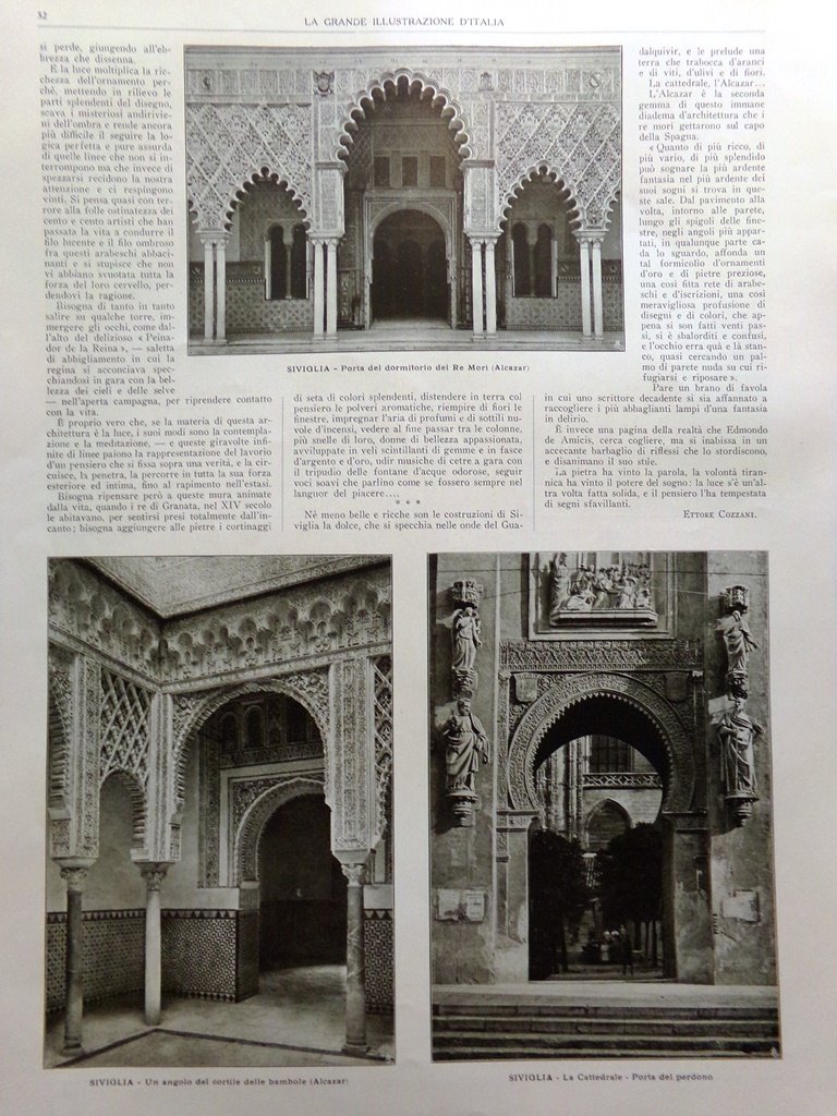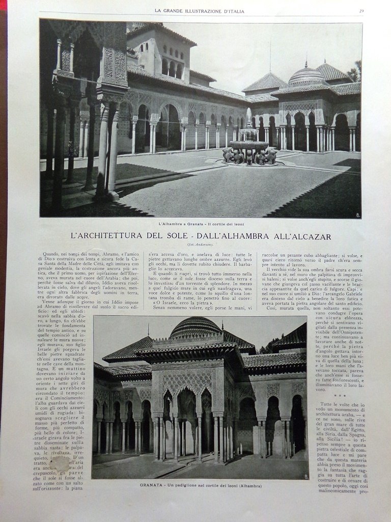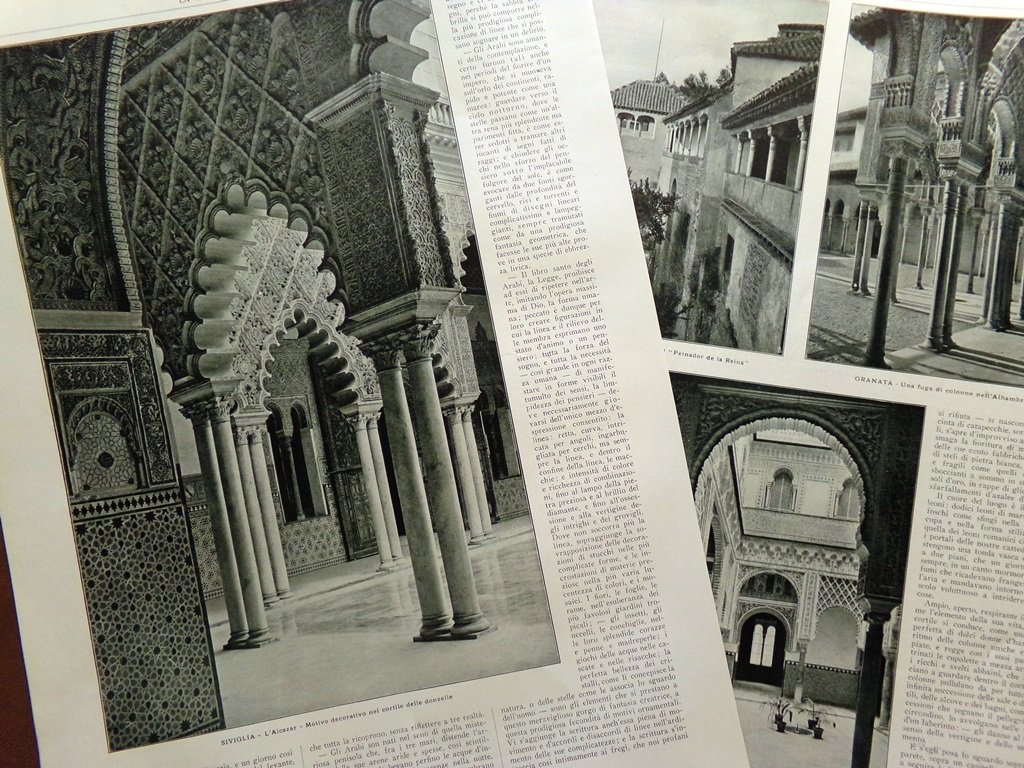 Articolo del 1925 Architettura del Sole Alhambra Alcazar Granata Siviglia Spagna