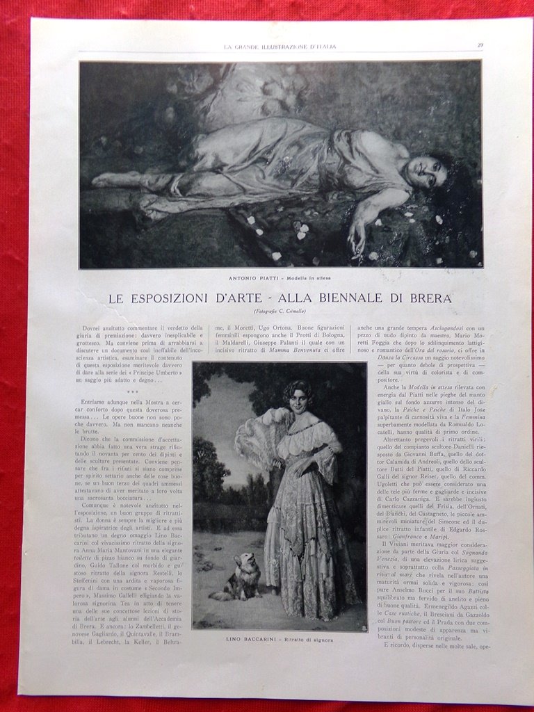 Articolo del 1925 Biennale Arte di Brera Piatti Baccarini Foggia Palanti Bagozzi