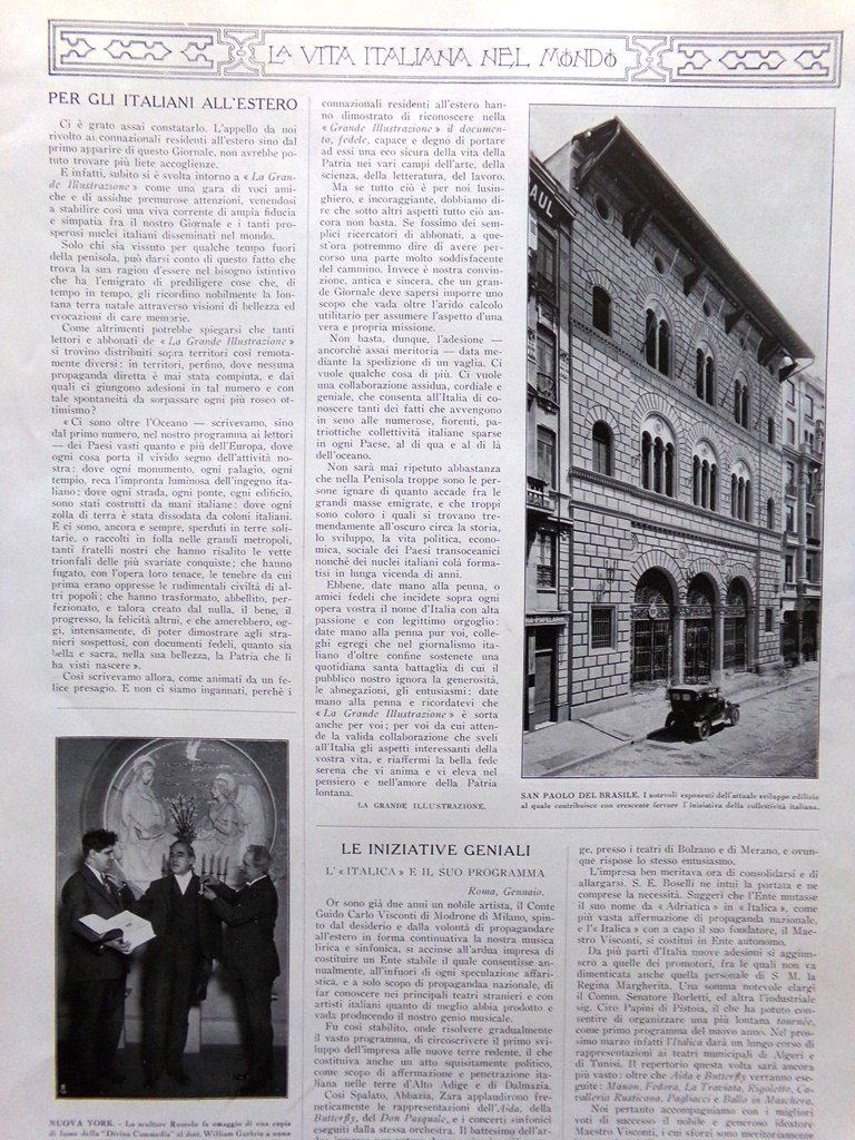 Per gli italiani all'estero - San Paolo nel Brasile, lo scuoltore Ruotolo a new York, William Guthrie, Piccirilli