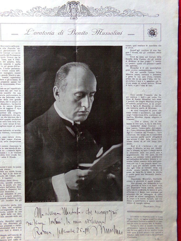 Articolo del 1925 L'oratoria di Benito Mussolini di Francesco Vita