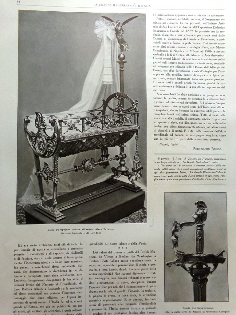 Articolo del 1925 Maestro del Legno Ludovico Sangermano Russo Spada Culla