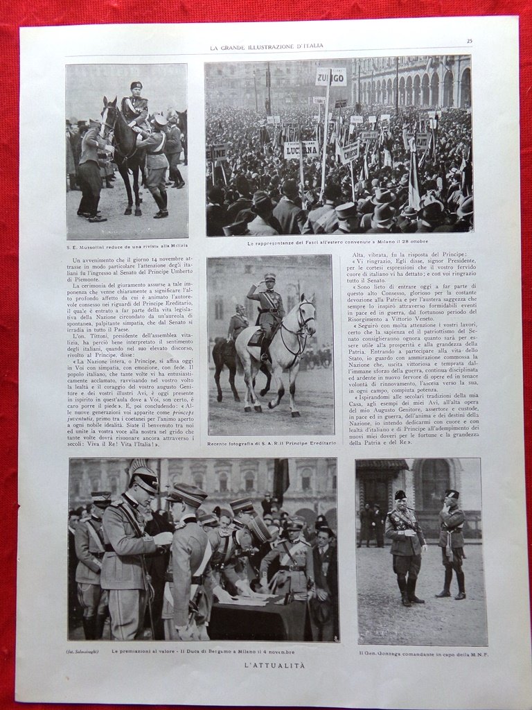 Articolo del 1925 Mussolini Fasci Gonzaga Duca Bergamo Angelo Musco Cornali
