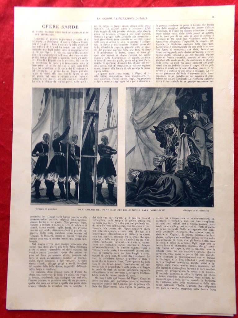 Articolo del 1925 Opere Sarde Nuovo Palazzo Comune di Cagliari Decorazioni