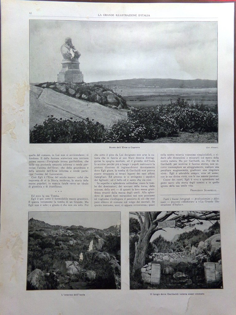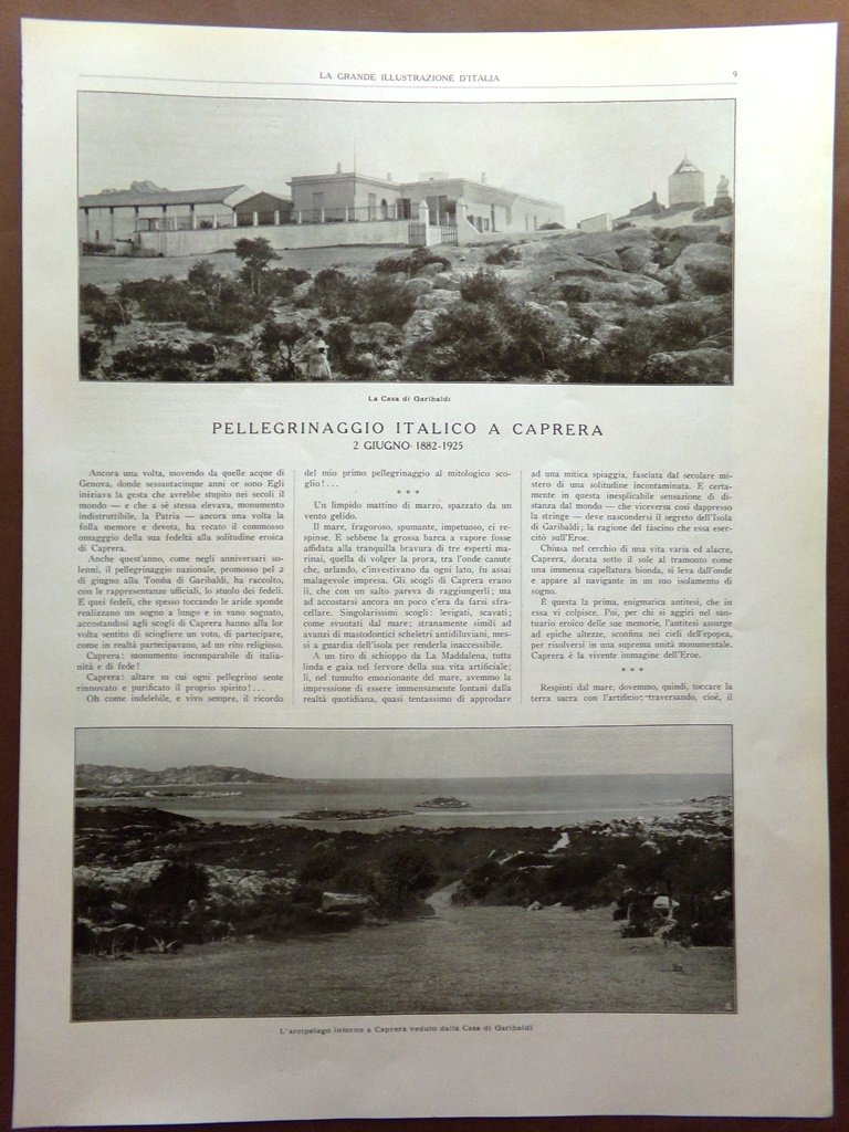 Articolo del 1925 Pellegrinaggio italico a Caprera Garibaldi Tomba Eroe Isola