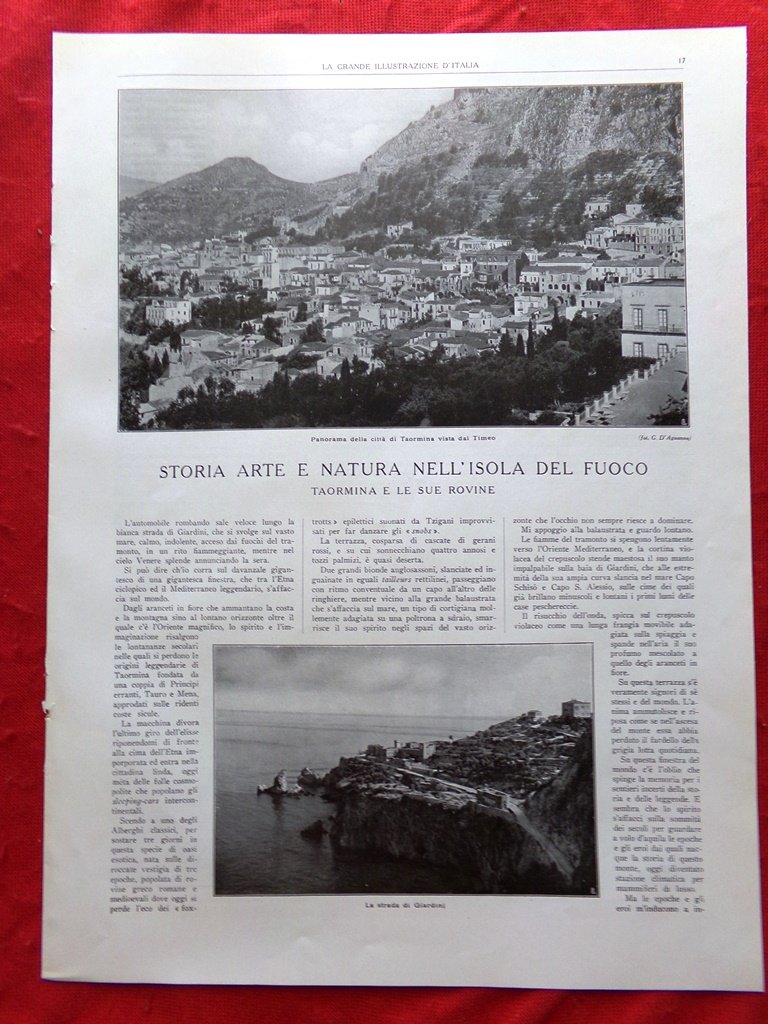 Articolo del 1925 Sicilia Taormina Giardini Etna Teatro Antico Greco Isola Bella