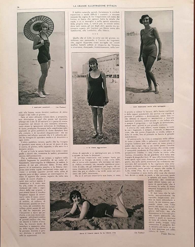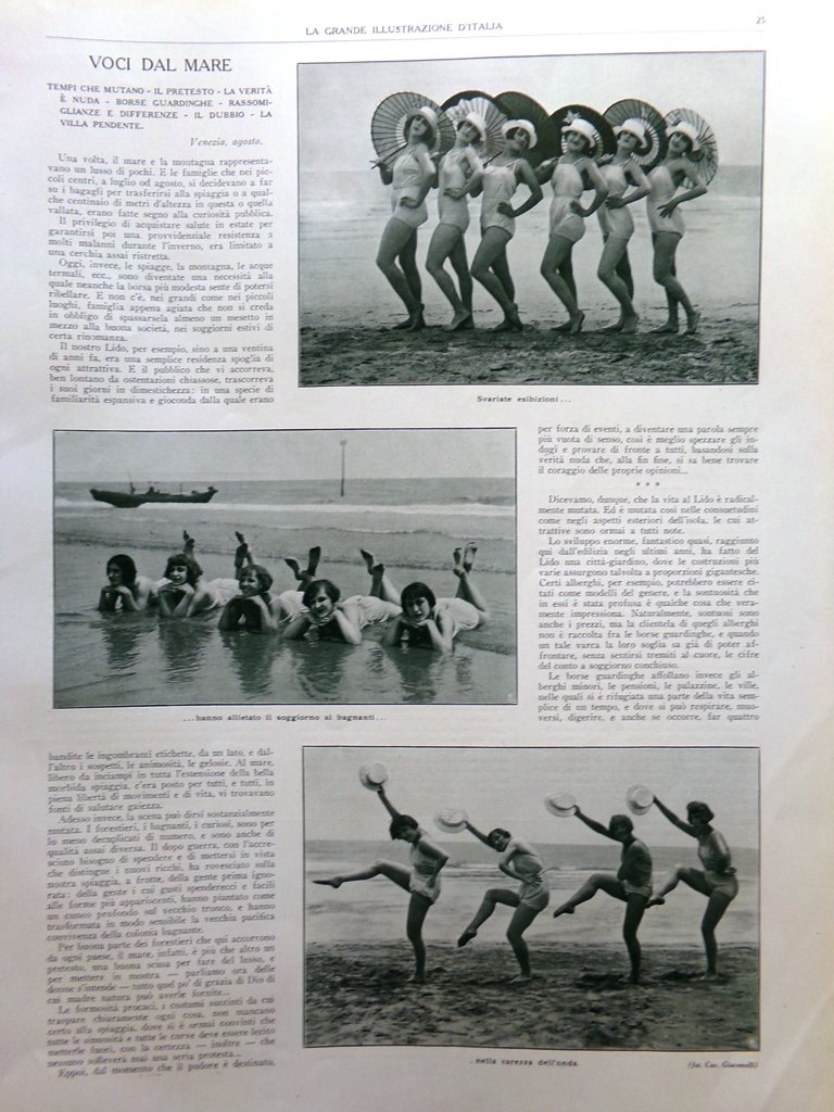 Articolo del 1925 Voci dal Mare Moda Costumi Spiaggia Piero Bruni