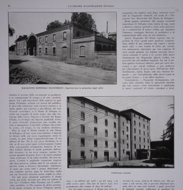 Articolo del 1927 Istituzioni Benefiche Monte Bologna Magazzini Colliva Sede