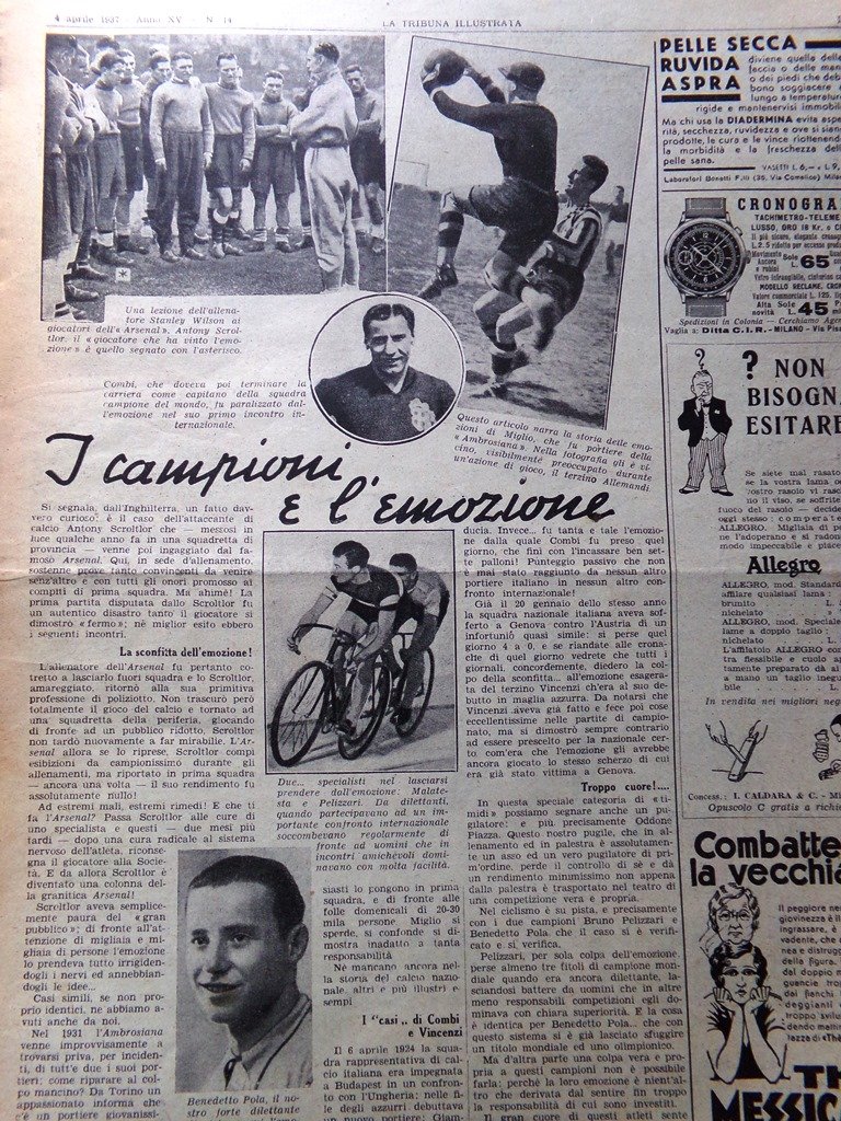 Articolo del 1937 I campioni Benedetto Pola Malatesta Pelizzari Miglio Combi