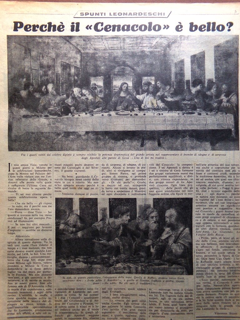 Articolo del 1939 Perché il Cenacolo è bello di Vincenzo Bucci Leonardo da Vinci
