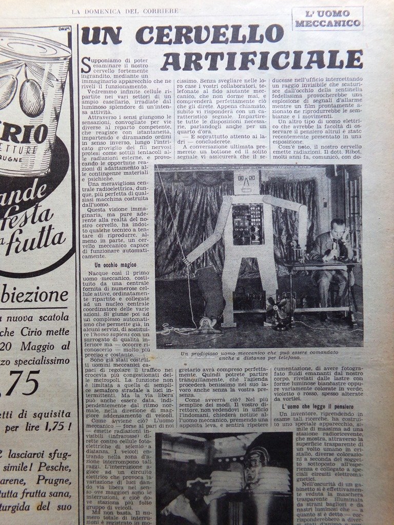Articolo del 1939 Uomo Meccanico Robot Cervello Artificiale Ugo D'Atella