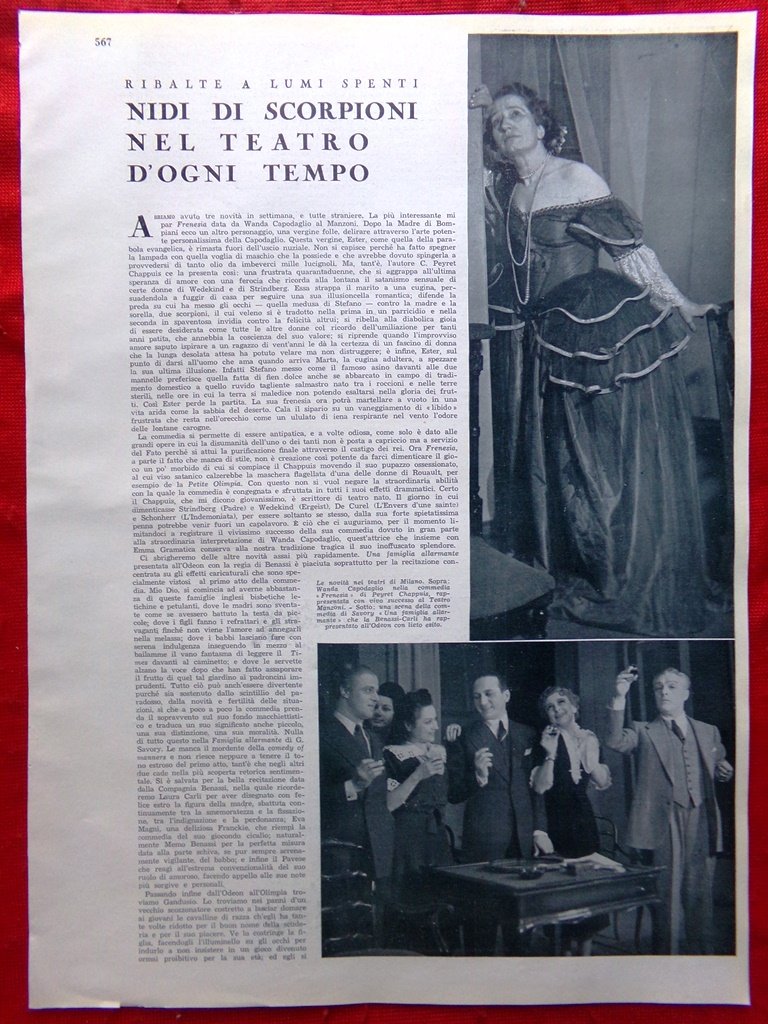 Articolo del 1939 Wanda Capodaglio Gandusio Gheraldi Irma Gramatica Ruggeri Pola