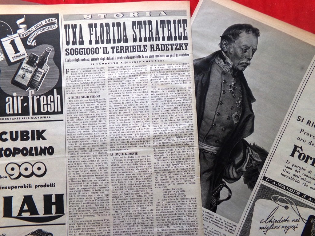 Articolo del 1952 Feldmaresciallo Radetzky Florida Soggiogato da Stiratrice