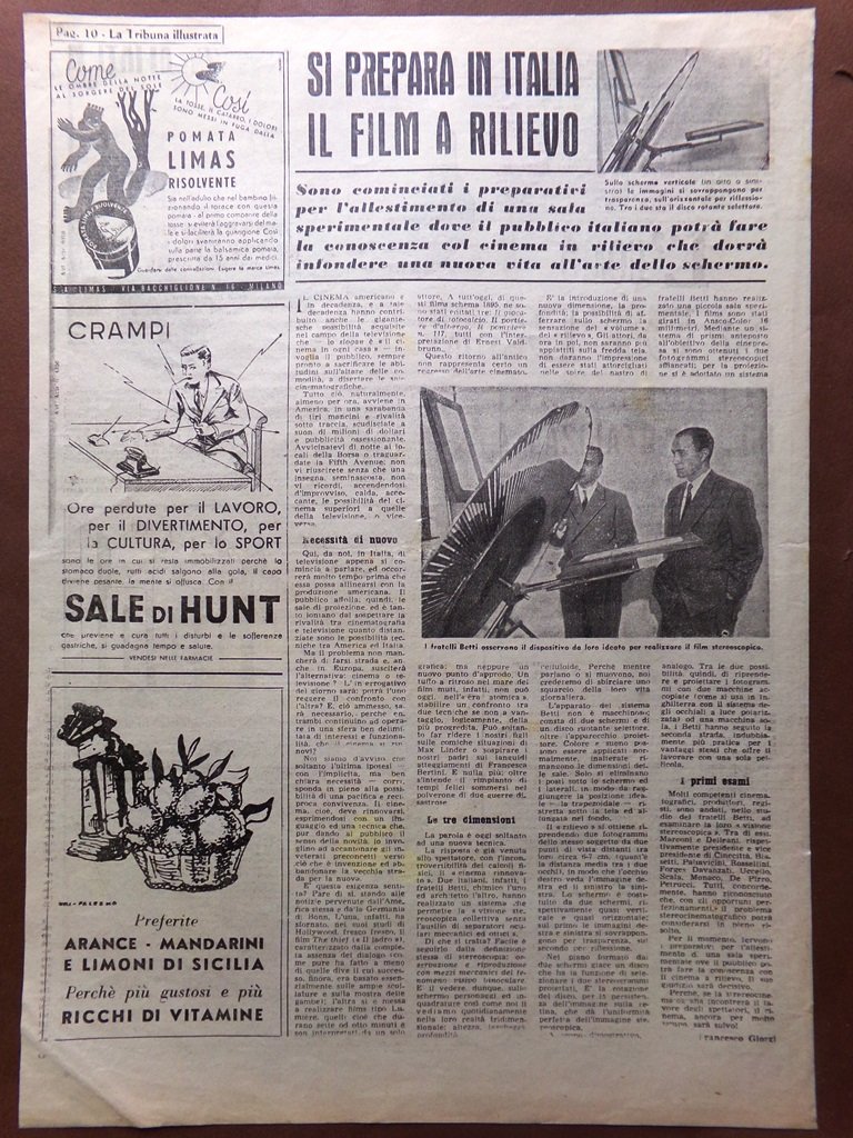 Articolo del 1953 Si prepara in Italia il film a Rilievo Cinema 3D Giorgi