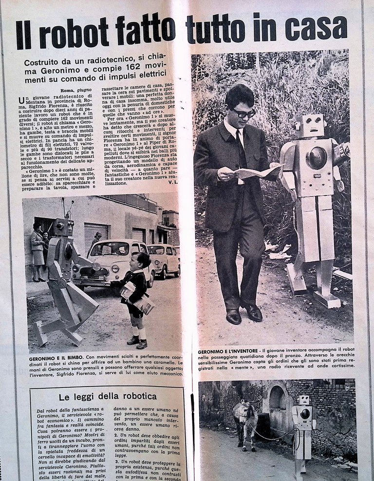 Articolo del 1966 Il Robot Fatto tutto in Casa Sigfrido Fiorenza Geronimo