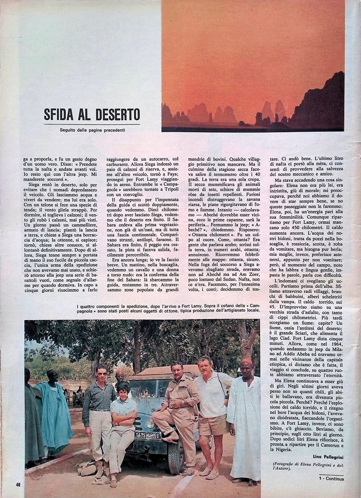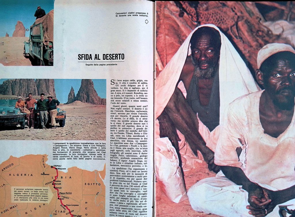 Articolo del 1966 Sfida al Deserto Lino Pellegrini Sahara Cimitero Leclerc Oasi