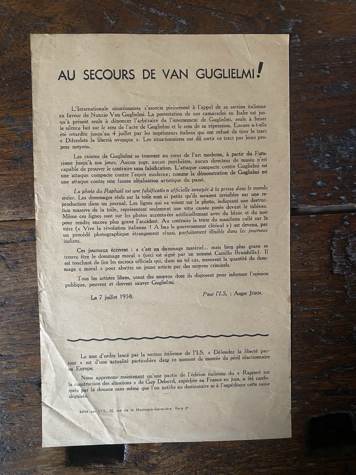 Asger Jorn Au secours de Van Guglielmi! Paris Internazionale Situazionista 1958