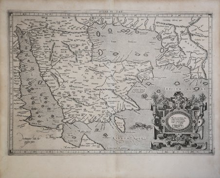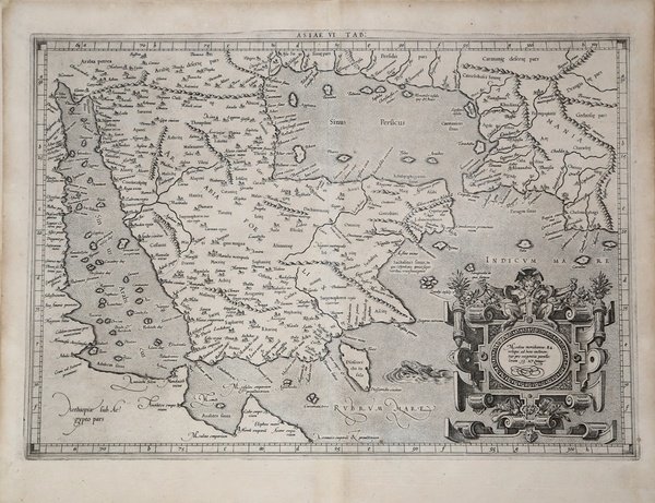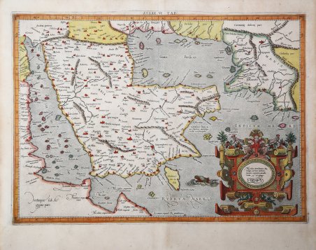 Carta tolemaica del Medio Oriente di Gerard Mercator, basata sulle coordinate geografiche di Claudio Tolomeo. La carta di Mercator è considerata una pietra miliare nella mappatura della penisola arabica. In origine, Tolomeo si era basato sui resoconti di viaggiatori e marinai e, sebbene le informazioni fossero di seconda mano e spesso imprecise, rappresentavano il resoconto più avanzato della geografia dell'epoca. Nel caso dell'Arabia, Tolomeo sovrastimò sia l'ampiezza della parte meridionale dell'Arabia sia le dimensioni e la forma del Golfo Persico. L'Arabia Petrea e l'Arabia Deserta sono entrambe collocate a nord e l'Arabia Felix è il termine applicato all'intera penisola, piuttosto che alle sue porzioni meridionali. Mappa tolemaica della penisola arabica, detta Arabia Felix, tratta dal ' Cl. Ptolemaei Alexandrini, Geographiae Libri Octo, ' pubblicata prima a Colonia da Gottfried von Kempen (1578) e poi ristampata dallo stesso editore nel 1584 (Van der Krogt 1, 502) e poi da Isaac Elsevier per il ' Theatrum Geographiae veteris ' di Petrus Bertius (Leyden 1618). Di tutte le edizioni di Tolomeo, quella di Gerard Kremer (Mercatore), pubblicata nel 1578, e forse tecnicamente la più bella. A questo punto la ' Geografia ' di Tolomeo perdeva pero ogni pretesa di “attualità”, laddove lo scopo di Mercatore era quello di produrre un atlante del mondo classico che servisse da complemento al suo atlante moderno (per tale ragione egli aveva tentato di recuperare la forma originale dell’atlante tolemaico, scartandone le moderne accrezioni). L'interpretazione di Mercatore del testo tolemaico, per le 28 carte che illustrano la sua ' Geographia ' è stata, quindi, una delle più veritiere. Egli aveva passato 13 anni a ricercare, disegnare e incidere le carte, rinunciando anche alla pubblicazione delle sue carte “moderne”. Questo esemplare proviene dal ' Theatrum Geographia Veteris ' di Petrus Bertius edita a Leida nel 1618, che combina il Tolomeo di Mercator, le 8 tavole del Moretus per rappresentare la ' Tabula Peutingeriana ' e 14 mappe storiche delle regioni d'Europa derivate dal ' Parergon ' di Ortelius. Acquaforte, finemente colorata a mano, in ottime condizioni. ' Eearly and scarce map of present day Saudi Arabia, Qatar, United Arab Emirates, Yemen, and Oman. ' Mercator's Ptolemaic map of the Middle East, based upon the works of Claudius Ptolemy. Mercator's map was a landmark in the mapping of the Arabian Peninsula, being the last published edition of Ptolemy and without question the most heavily researched and studied of all editions by its maker. Ptolemy had originally drawn on the accounts of travelers and sailors and though the information was secondhand and often inaccurate it represented the most advanced account of the world's geography at that time. In the case of Arabia, Ptolemy overestimated both the width of the southern part of Arabia and the size and shape of the Persian Gulf. Arabia Petrea and Arabia Deserta are both placed in the north and Arabia Felix is the term applied to the whole peninsula, rather than to the southern portions of it. ' Map taken from the ' Cl. Ptolemaei Alexandrini, Geographiae Libri Octo, ' first published in Cologne by Gottfried von Kempen (1578) and then reprinted by the same publisher in 1584 (Van der Krogt 1, 502) and then by Isaac Elsevier for the Petrus Bertius’ ' Theatrum Geographiae veteris ' (Leyden 1618). Mercator's interpretation of the 28 Ptolemaic text was possibly one of the truest undertaken up until that time. He had spent 13 years researching, drawing and engraving the maps at much commercial sacrifice to himself, having seen Ortelius's ' Theatrum ' and De Jodes ' Speculum ' published, to become both technical and commercial successes. In later life he devoted himself to his edition of the maps in Ptolemy's ' Geographia, reproduced in his own engraving as nearly as possible in their original form. This example comes from the ' Theatrum Geographia Veteris ' of Petrus Bertius published in Leiden in 1618, which combines Mercator's Ptolemy, the 8 plates of Moretus to represent the ' Tabula Peutingeriana ' and 14 historical maps of the regions of Europe derived from the ' Parergon ' of Ortelius. Copperplate, fine later hand colour, in good condition. Cfr. Van der Krogt, P. (Atlantes) 0926:1.2; Tibbetts, G.R. 39; Al Ankary 262. McMinn 15.