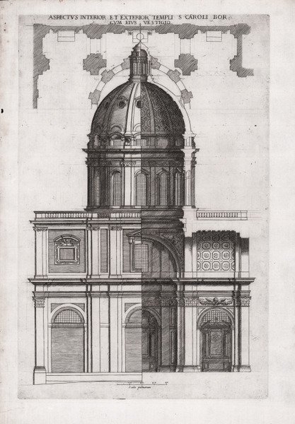 Aspectus Interior et Exterior Templi S. Caroli Bor. cum Eius Vestigio