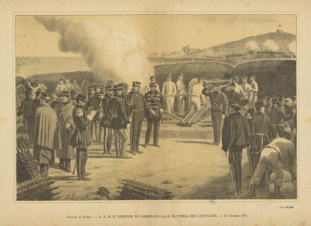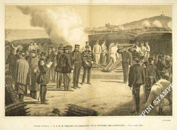 Assedio di Gaeta - S.A.R. il Principe di Carignano alla batteria dei Cappuccini - 11 Gennaio 1861