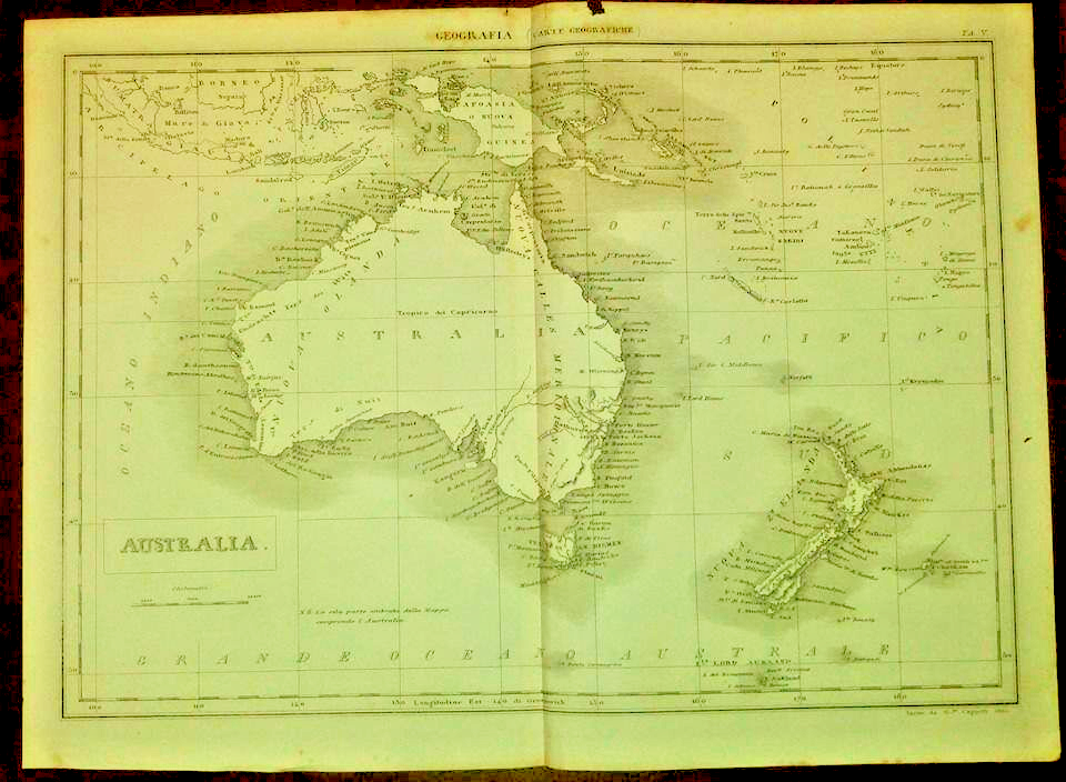 AUSTRALIA CARTA GEOGRAFICA ORIGINALE 1866 Incisione Stampa Antica Tavola Oceania