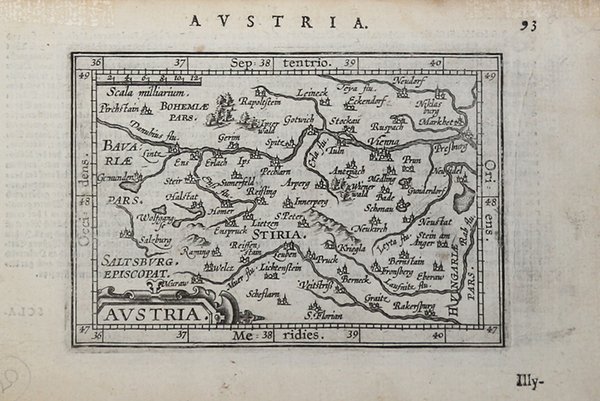 Carta geografica tratta dal edizione tedesca di ' Epitome theatri orbis terrarum ' di Abraham Ortelius, nella nuova versione dell'editore Jan Keerbergen. Pubblicata nel 1604 a Francoforte con il titolo ' Ausszug Auss Abrami Ortely Teatro.Dopo la morte di Abraham Ortelius, nel 1598, Jan Keerbergen pubblica una nuova edizione dell'Epitome ' contenente 123 mappe, tutte incise dai fratelli Ambrose e Ferdinand Arsenius, copiando le precedenti lastre intagliate da Philip Galle.Il testo è curato da Michael Coignet e conosce molteplici tirature in latino, francese, inglese tedesco ed italiano tra il 1601 ed il 1612.Incisione in rame, in ottimo stato di conservazione. Miniature map taken from the German edition of the ' Epitome theatri orbis terrarum, ' firts published in ' Antwerp by Jan Keerbergen, 1601 - followed by the editions by Jan B. Vrients, 1609 and Plantin Press, 1612. This German issue was made in Frankfurt (1604), with the title ' Ausszug auss Abrahami Ortely theatro ' by Jan Keerbergen & Levinus Hulsius.In 1601 Jan Keerbergen published the first edition of a world atlas with all the plates engraved by Ambrose and Ferdinand Arsenius and with text by Michael Coignet.The maps were all nicely drawn and engraved and easily recognized, as they have wide borders showing latitude and longitude. The 123 plates were for the most part copied from those in the 1601 Jan B. Vrients’ edition of Philip Galle’s version, though not arranged in the same sequence.Etching, good condition. Cfr.