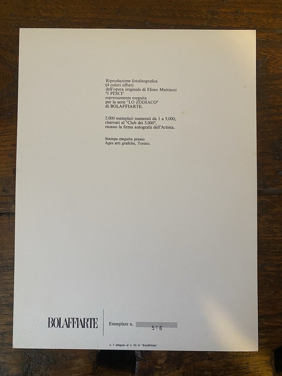 Autografato Mattiacci Eliseo Riproduzione fotolitografica Bolaffi Arte 1976