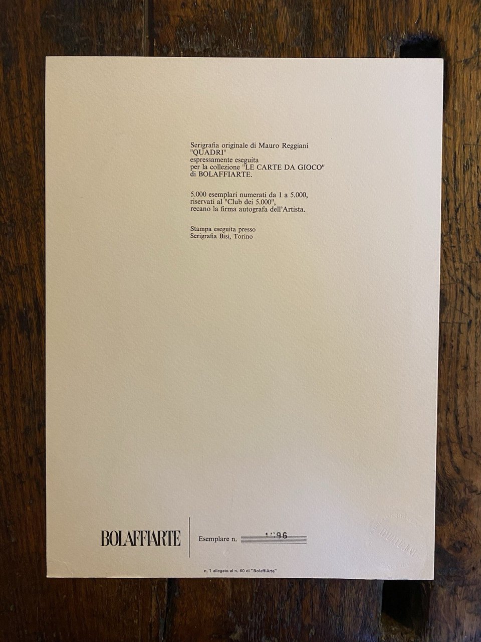 Autografato Reggiani Mauro Serigrafia Bolaffi Arte 1976