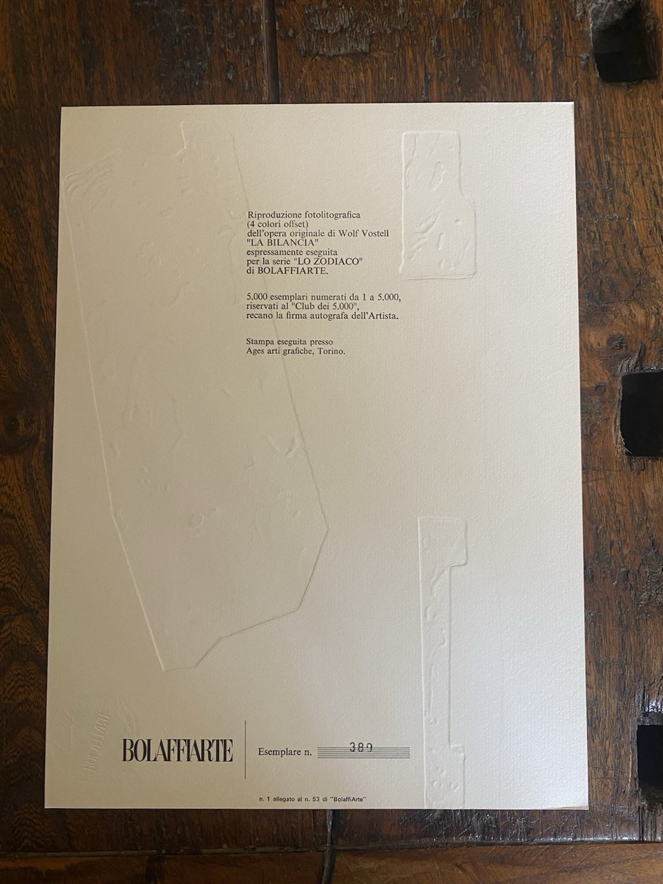 Autografato Vostell Wolf Fotolitografia Bolaffi Arte 1975