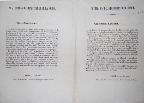 AUX CITOYENS DU DEPARTEMENT DE LA CORSE. - Ai cittadini del dipartimento di Corsica.