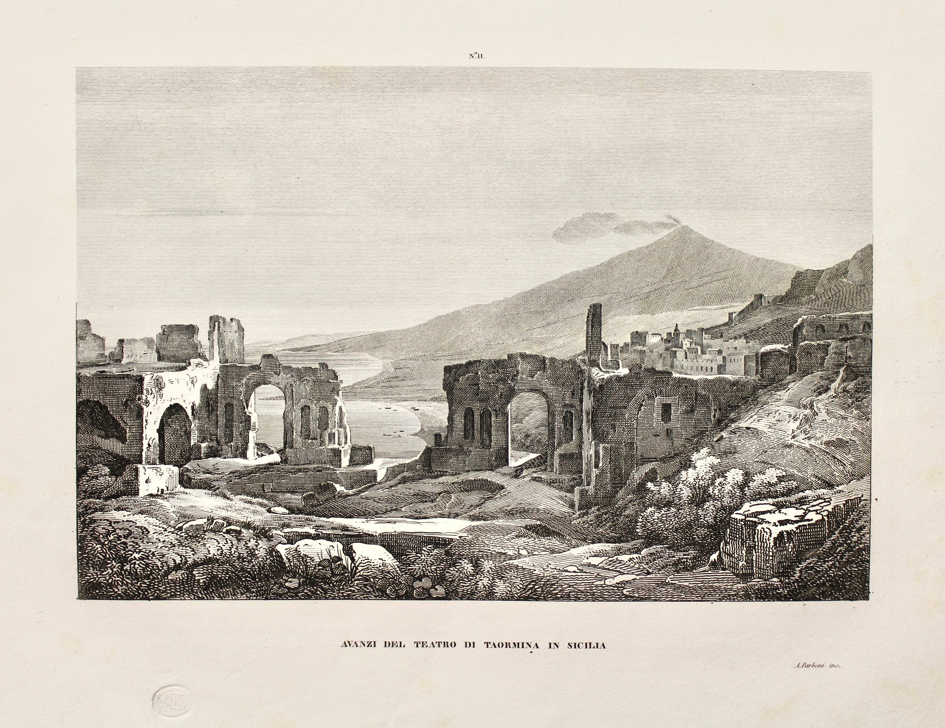 Incisione in rame di A. Parboni, mm 193x290. Da Atlante geografico dell'Italia. Attilio Zuccagni-Orlandini (1784-1872) fu un cartografo e geografo italiano. La sua opera principale è senza dubbio la Corografia fisica, storica e statistica dell'Italia e delle sue isole, cui l'incisione appartiene. La Corografia si compone di dodici tomi (senza contare i vari supplementi), stampati tra il 1833 e il 1845, ed è corredata da un atlante in due volumi e da numerose mappe geografiche e topografiche, nonché da tavole illustrative. Molto ben conservata