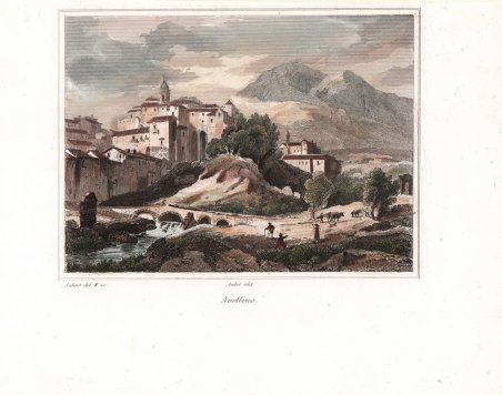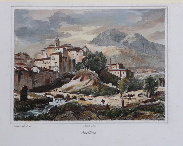 Veduta tratta dal celebre L'Italie, la Sicile, les Iles Éoliennes, l'Ile d'Elbe, la Sardaigne, Malte, l'Ile de Calypso etc. D'après les inspirations, les recherches et les travaux de M. M. le Vicomte de Chateaubriand, De Lamartine, Raoul-Rochette, le Comte de Forbin, Piranesi, Mazzara, et de Napoléon, Denon, Saint-Non, Lord Byron, Goethe, Visconti, Cicognara, Lanzi, de Bonstetten, Swinburne, etc. Sites, Monumens, Scènes et Costumes, d'après M.me Haudebourt-Lescot, MM. Horace-Vernet, Granet, Isabey, Ciceri, Mazzara, le Major Light, le Cap. Batty, Cooke, Gell et Gandy, Pinelli, Ferrari, Zucoli, et beaucoup d'autres artistes italiens. Recueillis et publiés par Audot Père, Membre de la Société de Géographie, edito a Parigi tra il 1834 ed il 1837 e ristampato a Torino [Giuseppe Pomba e Ca, 1834-1838]. L'opera, in cinque volumi, raccoglie scritti di autori vari, curati da Audot, ed è riccamente illustrata da 324 incisioni su acciaio fuori testo, molte delle quali con accostamento multiplo, per un totale di 473 tavole. Fu notoriamente mastodontico il lavoro cui si sottopose Louis Eustache Audot (1783-1870). ' Finemente colorata a mano. View taken from the famous L'Italie, la Sicile, les Iles Éoliennes, l'Ile d'Elbe, la Sardaigne, Malte, l'Ile de Calypso etc. D'après les inspirations, les recherches et les travaux de M. M. le Vicomte de Chateaubriand, De Lamartine, Raoul-Rochette, le Comte de Forbin, Piranesi, Mazzara, et de Napoléon, Denon, Saint-Non, Lord Byron, Goethe, Visconti, Cicognara, Lanzi, de Bonstetten, Swinburne, etc. Sites, Monumens, Scènes et Costumes, d'après M.me Haudebourt-Lescot, MM. Horace-Vernet, Granet, Isabey, Ciceri, Mazzara, le Major Light, le Capt. Batty, Cooke, Gell et Gandy, Pinelli, Ferrari, Zucoli, et beaucoup d'autres artistes italiens. Recueillis et publiés par Audot Père, Membre de la Société de Géographie, published in Paris between 1834 and 1837 and reprinted in Turin [Giuseppe Pomba e Ca, 1834-1838]. The work, in five volumes, collects the writings of various authors, edited by Audot, and is richly illustrated with 324 engravings on steel outside the text, many of them with multiple combinations, for a total of 473 tables. Louis Eustache Audot (1783-1870) was a notoriously mammoth task. ' Finely hand-colored. Cfr.