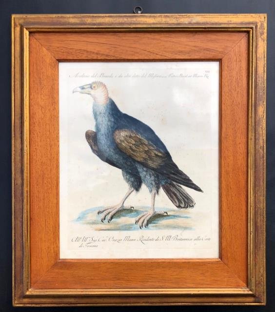 Firenze, Stamperia Mouckiana, 1770 circa. Acquaforte, colore d'epoca, cm 27,5 x 34,5 circa (alla lastra) più ampi margini. Tavola XIII. Bella calcografia proveniente dalla "Storia naturale degli Uccelli", di Saverio Manetti, Lorenzo Lorenzi e Violante Vanni, stampata a Firenze dal 1767 al 1776. Il Manetti, medico e direttore dell'Orto Botanico di Firenze dal 1749 al 1782, fu il curatore dell'opera: responsabile del testo, della nomenclatura delle specie e della distribuzione; l'abate Lorenzo Lorenzi e Violante Vanni (una delle poche donne a lavorare in questo campo) disegnarono, incisero e colorarono a mano le tavole. Il risultato fu questa importante opera di ornitologia, la migliore realizzata fino a quel momento. Ottime condizioni.