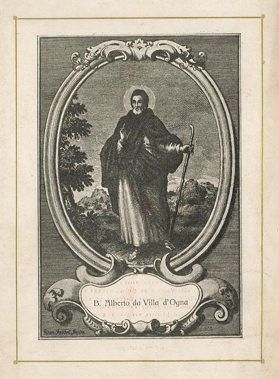 Stampa, antica ed originale, raffigurante il beato da Villa d'Ogna nella Valle Seriana superiore, alla confluenza dell'Ogna nel Serio in provincia di Bergamo