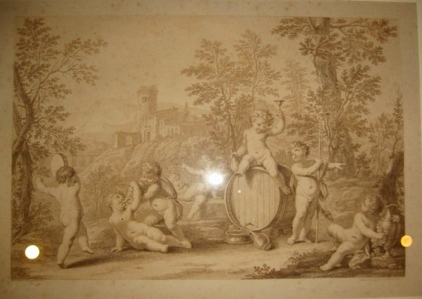 Acquatinta originale in seppia da un soggetto di Marcantonio Franceschini (cm. 39,5x26 più ampi margini). Lievi fioriture ma ottimo esemplare. De Vesme-Calabi, n. 1255.