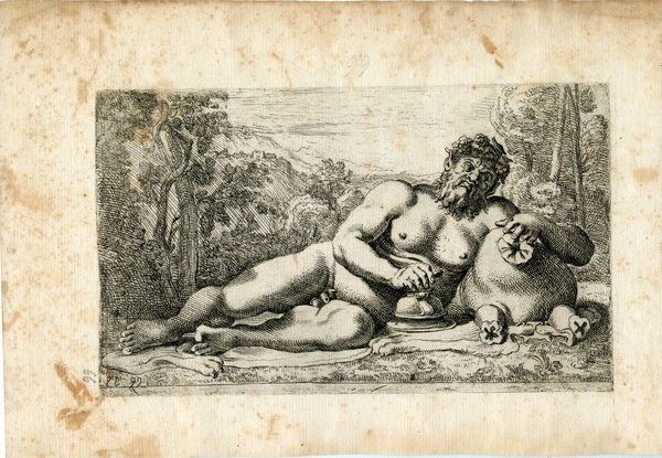 Bellissima incisione acquaforte rappresentante Bacco. Piccoli buchi nella parte sinistra. 33 x 20 cm.