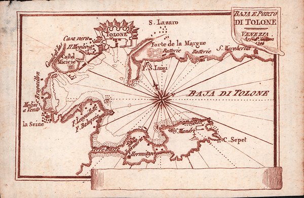 RARITA’ CARTOGRAFICA Sconosciuta piccola carta geografica con imprint di Pietro Zancon e data 1794, appartenente a un non documentato atlante in miniatura dal titolo “Atlante tascabile per le dame”, suddiviso in tre tomi, stampati “IN VENETIA Presso G. Zatta”, senza data ma circa 1795. Si tratta di carte da visita – con un apposito spazio bianco dove apporre il proprio nome – dove compare l’imprint o di Pietro Zancon (accompagnato dalla data 1794) o di Giacomo Zatta (con data 1794 o 1795), che, come si legge sul frontespizio, risulta l’editore dell’opera. Possiamo ipotizzare che la serie, iniziata da Zancon fu poi terminata dallo Zatta. Sulla carta dell’Italia – presumibilmente la prima tavola dell’opera – compare stampato il nome di Chiara Minelli Rota, nobildonna veneziana che sposò Antonio Rota nel 1794; tutte le restanti 65 carte recano lo spazio bianco privo di nome. In precedenza, le carte erano note solo attraverso una serie, priva di imprint editoriale, venduta 21 anni fa (1999) dall’Antiquariaat Haas di Bedburg Hau; parlando con Stephan Haas, la serie, priva di titolo e dati editoriali si componeva di 70 mappe. Le carte furono vendute separatamente sotto il nome di G. Bonatti, firma dell’incisore che si trova nella carta della Francia. In seguito, le tavole furono attribuite a Pietro Zaricen da Geoffrey King (cfr. Miniature Antique Maps, p. 181). Il nome dello Zaricen viene dedotto dalla carta della contea del Roussillon, che reca l’iscrizione “Venezia 1794 App.o P. Zancon”, letto erroneamente come Zaricen. Lajos Szantai include la carta dell’Ungheria nella sua cartobibliografia, traducendo il nome dell’autore in Zancen (cfr. Atlas Hungaricus 1528-1850). Sempre King, che non menziona nessuna carta firmata da Zatta, sostiene che “About the turn of the century a signed card of the first edition, with a map of the province of Roussillon in the south of France, was seen at an Ephemera Society Fair in London”. Questo esemplare sembrerebbe oggi quello conservato alla Yale University Library [1978 351], che lo descrive composto da 70 carte geografiche. Non sappiamo se sia il numero totale delle mappe, e l’assenza di un indice o dell’elenco non consente di stabilire l’esatto numero delle carte che lo compongono. http://hdl.handle.net/10079/bibid/3611852Confrontando le carte erroneamente attribuite allo Zaricen ci si accorge che la lastra è abrasa in corrispondenza della firma di Zancon o Zatta. Molto scarse sono le notizie sulle carte che possiamo ora definire “ex Zaricen”. Jason Hubbard nella sua bibliografia recente sulle carte del Giappone raffigura la carta priva dell’imprint “App.o G. Zatta” attribuendola - sulla base delle informazioni bibliografiche finora note – a Giuseppe Bonatti e Pietro Zaricen: “This is one of the 70-odd geographical cards, printed on one side only, acquired by the Haas brothers in 1999. The cards cover countries around the world and include detailed map of Italian provinces. The card with the map of France carries the inscription: G. Bonatti fece; and it is presumed that Bonatti engraved all of them although this is questioned by King” (cfr. J. Hubbard, Japoniae Insulae, n. 124). Il nostro esemplare della carta della Francia, che reca l’imprint “Venezia 1794, App.o P. Zancon” reca in basso a destra la firma di Bonatti sopra menzionata. Dunque, l’unica differenza tra questa serie di sconosciute carte sembra essere la presenza degli imprint editoriali di Zancon e Zatta, accompagnati dalla data 1794 o 1795. Giuseppe Bonatti è menzionato da V. Valerio nella qualità di incisore cresciuto alla scuola Remondini di Bassano, autore di alcune carte per l’atlante di Pazzini Carli (Siena, 1788-1800) e per l’Atlante Geografico di Carlo Antonio Barbiellini (Milano, 1807). Dal 1809 in poi lavorò come incisore per il Deposito della Guerra di Milano (cfr. V. Valerio, Cartografi Veneti, p. 153). Pietro Zancon era, assieme . A GREAT RARITY Unknown small map with imprint by Pietro Zancon and date 1794, belonging to an undocumented miniature atlas entitled “Atlante tascabile per le dame” (Pocket Atlas for ladies), divided into three volumes, printed "IN VENETIA Presso G. Zatta", undated but about 1795. A rare set of visiting cards published in Italy features pretty little maps of all parts of the world - with a special white space where to put your name - where the imprint appears or of Pietro Zancon (accompanied by the date 1794) or Giacomo Zatta (with the date 1794 or 1795), who, as can be read on the title page, is the publisher of the whole Atlas. We can speculate that the series, started by Zancon was later terminated by Zatta. On the map of Italy is printed - presumably the first map of the work - the name of Chiara Minelli Rota, Venetian noblewoman who married Antonio Rota in 1794; all remaining 65 maps bear the blank space without names. Previously, the maps were known only through a series, without editorial imprint, sold 21 years ago (1999) by the Antiquariaat Haas of Bedburg Hau; speaking with Stephan Haas, the series, without title and printing details, consisted of 70 maps. The maps were sold separately under the name of G. Bonatti, the engraver's signature found on the map of France. Later, the plates were attributed to Pietro Zaricen by Geoffrey King (see Miniature Antique Maps, p. 181). The name of Zaricen is derived from the Roussillon county map, which bears the inscription "Venice 1794 App.o P. Zancon", incorrectly read as Zaricen. Lajos Szantai includes the map of Hungary in his cartobibliography, translating the author's name into Zancen (see Atlas Hungaricus 1528-1850). Always King, who does not mention any map signed by Zatta, said: "About the turn of the century a signed card of the first edition, with a map of the province of Roussillon in the south of France, was seen at an Ephemera Society Fair in London ". This copy would seem to be the one preserved in the Yale 