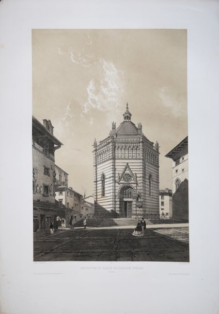 Bella veduta litografica tratta da ' La Toscane. Album pittoresque et archéologique exécutés sous la direction du M. le Prince Démidoff; dessiné d'après nature par André Durand, Paris, Lemercier, 1862-1863. Questo magnifico album monumentale di litografie realizzato dal francese André Durand intorno al 1862 è una delle opere più raffinate tra quelle che rappresentano la Toscana. Nessuno poteva essere più adatto a ritrarla di Durand, apprezzato disegnatore e litografo, esperto anche di archeologia. Spinto dall'entusiasmo del principe russo Anatole Demidoff, Durand realizzò dapprima un album con 18 litografie di vedute pittoresche dell'Isola d'Elba (in collaborazione con Eugène Ciceri). Si tratta di opere suggestive che mostrano un'isola selvaggia e in parte inesplorata. Tra queste spiccano le vedute di Portoferraio, Rio Marina, Marciana e anche della Villa Imperiale di San Martino con il Museo Napoleonico fondato dal Principe Demidoff. In seguito, l'opera si arricchì di altre 100 tavole delle più importanti città toscane, includendo anche ammalianti paesaggi artistici di campagna. Litografia tinta, in ottimo stato di conservazione. A fine litographic view taken from ' La Toscane. Album pittoresque et archéologique exécutés sous la direction du M. le Prince Démidoff; dessiné d’après nature par André Durand, Paris, Lemercier, 1862-1863. This magnificent monumental album of lithographs created by the French André Durand in about 1862 is one of the most refined works among those that represent Tuscany. Nobody could have been more suited to portray them than Durand, a highly-regarded sketcher and lithographer, also versed in archeology. Spurred on by the enthusiasm of the Russian prince Anatole Demidoff, Durand first produced an album with 18 lithographs of picturesque views of the Isle of Elba (in collaboration with Eugène Ciceri). They are evocative works showing a wild and partly unexplored island. Among them are outstanding views of Portoferraio, Rio Marina, Marciana and also of the Imperial Villa of San Martino with the Napoleonic Museum founded by Prince Demidoff. Later the work was enriched with another 100 plates of the most important Tuscan cities, also including bewitching artistic country landscape. Tinted lithograph, very good condition. Cfr.