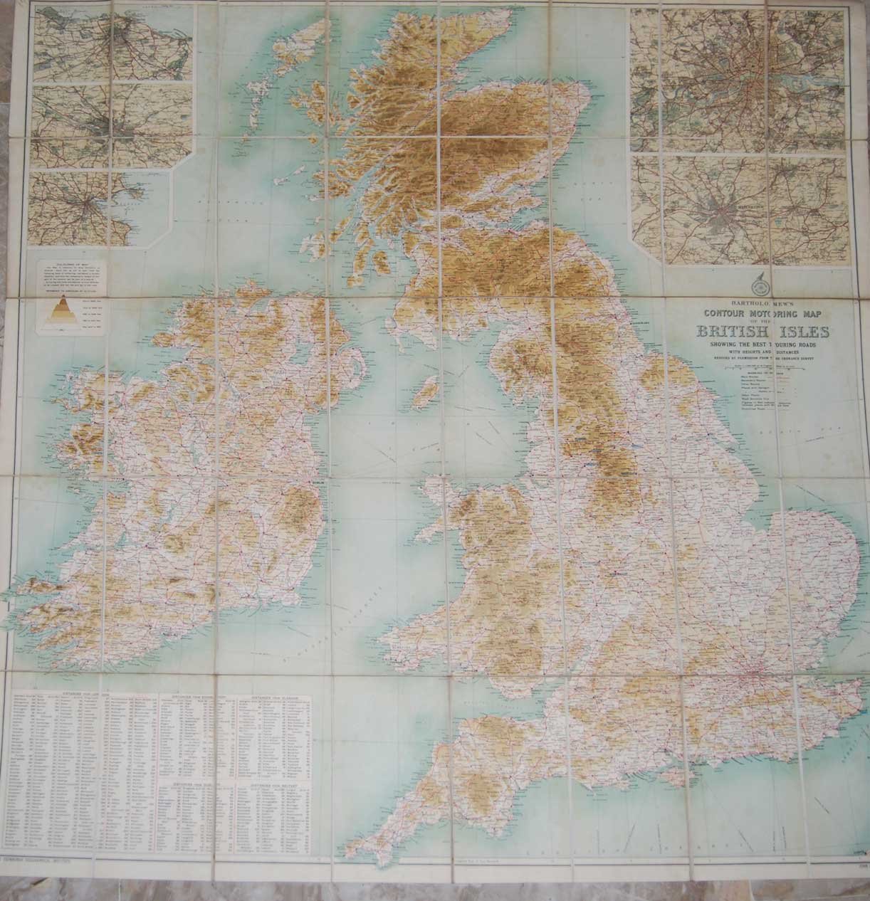 BARTHOLOMEW'S CONTOUR MOTORING MAP OF THE BRITISH ISLES. - Showing the best touring roads.