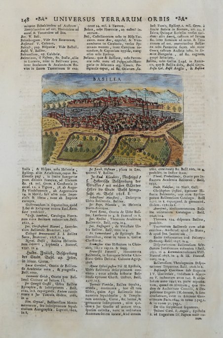 Veduta pubblicata per la prima volta in "Raccolta di le piu illustri et famose citta di tutto il mondo", edita da Francesco Valegio a Venezia verso la fine del’ 500, comprende circa 322 piante e vedute delle principali città del mondo conosciuto.Di questo volume si conservano diversi esemplari, tutti con numero variabile di incisioni e tutti privi di un indice a stampa. Inoltre gran parte delle tavole contenute nella raccolta del Valegio furono inserite nella "Nuova raccolta di tutte le più illustri et famose città di tutto il mondo" curata da Donato Rasciotti ed edita alla fine del sedicesimo secolo.Tuttavia è persino incerto quale delle due raccolte venne per prima alla luce ed ignote sono le datazioni di tutte le tirature conosciute.Molte delle immagini riprendono modelli figurativi apparsi nei primi volumi del Civitates Orbis Terrarum editi tra il 1572 ed il 1588 (e successivamente ristampati sino al 1617) dai cartografi Georg Braun e Franz Hogenberg. Questo esemplare è tratto dall'opera ' Universus terrarum orbis scriptorum calamo delineatus . qui de Europae, Asiae, Africae, & Americae regnis, provinciis, populis, civitatibus. pubblicata a Padova nel 1713, presso Matteo Cadorin, da Raffaello Savonarola, sotto lo pseudonimo di Lasor a Varea (o Varela). L'opera era una sorta di enciclopedia che conteneva notizie sulle varie località del mondo disposte in ordine alfabetico, arricchita da mappe e vedute di tutto il mondo che appartengono a celebri raccolte cartografiche del passato – Bertelli, Valegio, Camocio, Bonifacio, Nelli, Magini e altri – del quale probabilmente l’editore Cadorin era in possesso delle matrici originali. Incisione su rame, ampi margini, in ottimo stato di conservazione. The "Raccolta di le piu illustri et famose citta di tutto il mondo", published by Francesco Valegio in Venice towards the end of the XVI century, containing about 322 plans and views of the main cities of the World. There are different examples of this work, every one with a different number of plates and without an index. Many of these plates have been afterwards included in Donato Rasciotti's Nuova raccolta di tutte le più illustri et famose città di tutto il mondo, printed at the end of the XVI century. It is still, however, quite unclear whether Valegio or Rasciotti published first his collection. Francesco Valegio was born in Bologna around 1560, even though some say he might have been born in Verona; as engrver and calcographer, he worked in Venice, very often in association with other publishers. The plates of his Raccolta, which can be considered his most important work, do not bear any date, except for those of Algeri, Costantinopoli and Rodi, signed by Martino Rota, dated 1572. The city plans signed by Rota, (engraver born in Sebenico who worked in Venice until 1573), are the most ancient core of the work, which make us think that this work has been planned by Rota himself. Many plates recall the figurative models of the Civitates Orbis Terrarum printed between 1572 and 1588 (afterwards reissued until 1617) by Georg Braun and Franz Hogenberg. It is therfore possible that Valegio started to select the plates by Rota around 1580 and afterwards enlarged his collection at the end of the century. 112 plates bear Valegio's signature or monogram and as many can be ascribed to him; 69 have been ascribed to an unkwown artist. The collection was extremely successful and became the base for the following copies. ' This example is taken from the work ' Universus terrarum orbis scriptorum calamo delineatus . qui de Europae, Asiae, Africae, & Americae regnis, provinciis, populis, civitatibus. ' published in Padua in 1713, at Matteo Cadorin, by Raffaello Savonarola, under the pseudonym of Lasor a Varea (or Varela). The work was a kind of encyclopedia containing news about the various localities of the world arranged in alphabetical order, enriched with maps and views of the whole world belonging to famous cartographic collections of the past-Bertelli, Valegio, Camocio, Bonifacio, Nelli, Magini, and others-of which the publisher Cadorin probably possessed the original plates. Copper engraving, in excellent condition. Cfr.