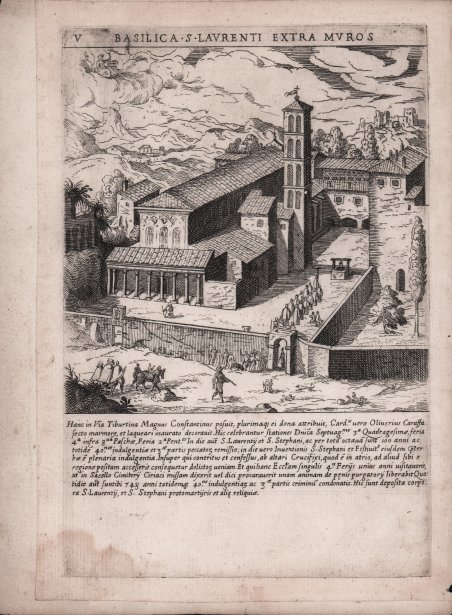 Acquaforte e bulino, 1609, priva della firma. L'opera appartiene ad una serie di 7 tavole raffiguranti sei Basiliche di Roma. Ciascuna tavola presenta in alto al centro, il nome latino della basilica; una veduta prospettica, di circa 142x130mm; sotto l’immagine, una lunga notazione di carattere storico sull’edificazione della chiesa, sui relativi culti e le reliquia conservate.In fondo alla prima tavola - San Giovanni in Laterano - troviamo ' l’excudit Franciscus Vill’a?na excudit Rom?. C? Privilegio Sum. Pont et Superior? licentia Anno 1609. L’opera è di estrema rarità e non è censita nei principali repertori.La raccolta era presente nella collezione del Palazzo Massimo, come si apprende da Vittorio Massimo, in ' Notizie istoriche della Villa Massimo alle Terme Diocleziane… del 1836. Magnifica prova, impressa su carta vergata coeva, con margini, applicata su supporto cartaceo coevo (probabile l'appartenenza ad un piccolo album), in ottimo stato di conservazione. ' Etching and engraving, 1609, unsigned. The work belongs to a series of 7 plates depicting Basilicas of Rome. Each plate presents in the upper center, the Latin name of the church; a perspective view, about 142x130mm; below the image, a long historical notation about the building of the church, its cults and relics preserved. At the bottom of the first panel - San Giovanni in Laterano - we find the excudit ' Franciscus Vill'a?na excudit Rom?. C? Privilegio Sum. Pont et Superior? licentia Anno 1609. The work is extremely rare and is not listed in the main repertories. The collection was present in the collection of the Palazzo Massimo, as we learn from Vittorio Massimo, in ' Notizie istoriche della Villa Massimo alle Terme Diocleziane. of 1836. Magnificent proof, printed on contemporary laid paper, with margins, applied to contemporary paper (probably belonging to a small album), in excellent condition. ' Cfr.