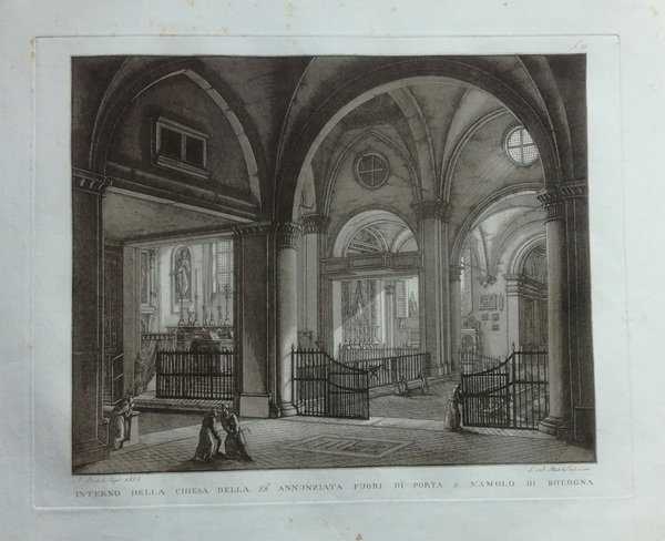 BASOLI, Antonio - "Peristilio della Chiesa del Calvario in S. Stefano in Bologna - A. Basoli dip. 1829 - L. e F. Basoli dis. e inc." Bella veduta dell'interno della Chiesa del Calvario in Santo Stefono, la Rotonda.